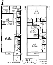 | 間取り | 3LDK 間取り内訳:リビングダイニングキッチン 18帖(1階)・洋室 5.2帖・洋室 6帖・洋室 6.8帖 |