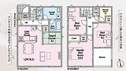 | 間取り | 4SLDK 間取り内訳:リビングダイニングキッチン 15帖(1階)・和室 5.2畳(1階)・洋室 7帖(2階)・洋室 6帖(2階)・洋室 5.7帖(2階) |