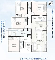 | 間取り | 4LDK 間取り内訳:リビングダイニングキッチン 16帖(1階)・洋室 6.5帖(1階)・洋室 5.4帖(1階)・洋室 5.4帖(1階)・洋室 5.2帖(1階) |