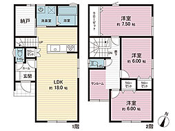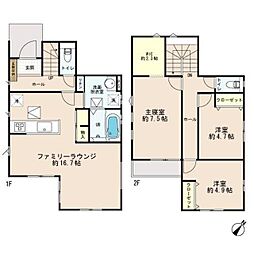 間取り内訳:リビングダイニングキッチン 17帖(1階)・洋室 8帖(2階)・洋室 6.2帖(2階)・洋室 4.5帖(2階)