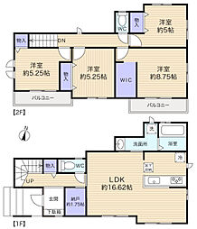 | 間取り | 4SLDK 間取り内訳:リビングダイニングキッチン 16.6帖(1階)・収納 1.7帖(1階)・洋室 8.7帖(2階)・洋室 5帖(2階)・洋室 5.2帖(2階)・洋室 5.2帖(2階) |