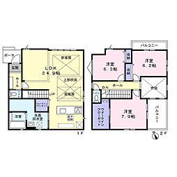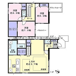 間取り内訳:リビングダイニングキッチン 23.7帖(1階)・洋室 7帖(2階)・洋室 6帖(2階)x2