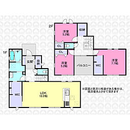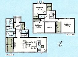 | 間取り | 3LDK 間取り内訳:リビングダイニングキッチン 18帖(1階)・洋室 7.7帖(2階)・洋室 5.2帖(2階)x2 |