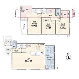 | 間取り | 4LDK 間取り内訳:リビングダイニングキッチン 20.2帖(1階)・洋室 6.5帖(2階)・洋室 5.5帖(2階)・洋室 5.2帖(2階)・洋室 4.7帖(2階) |