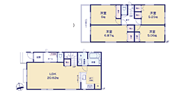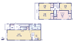| 間取り | 3LDK 間取り内訳:リビングダイニングキッチン 17帖(1階)・洋室 8.7帖(2階)・洋室 9.1帖(2階)・洋室 5帖(2階) |