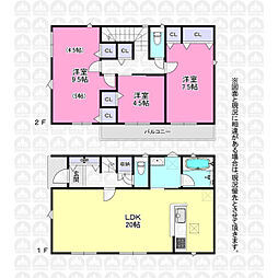 | 間取り | 3LDK 間取り内訳:リビングダイニングキッチン 17.2帖(1階)・洋室 5.2帖(2階)・洋室 6帖(2階)・洋室 7帖(2階) |