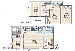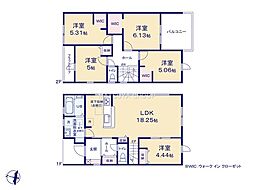 | 間取り | 5LDK 間取り内訳:リビングダイニングキッチン 15.7帖(1階)・洋室 4.5帖(1階)・洋室 6.3帖(2階)・洋室 5帖(2階)x2・洋室 4.5帖(2階) |