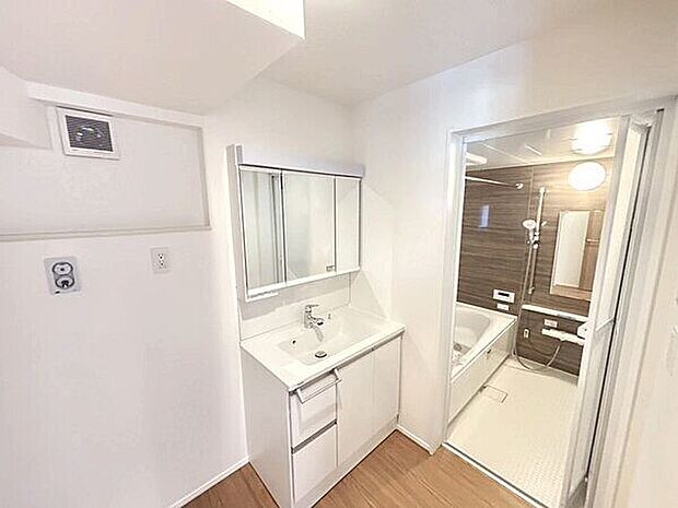 バスルームには浴室乾燥機採用。2台駐車可能なカースペース付き新築分譲住宅。