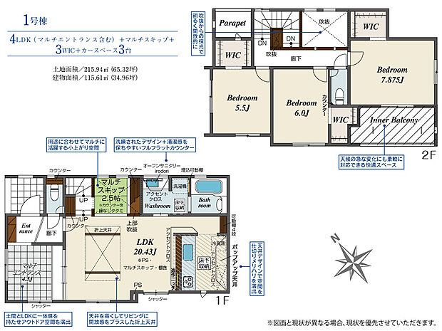 - 「建築条件付き土地」の「建物プラン例」は、土地購入者の設計プランの一例であり、プランの採用可否は任意です。