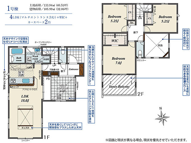 - 「建築条件付き土地」の「建物プラン例」は、土地購入者の設計プランの一例であり、プランの採用可否は任意です。