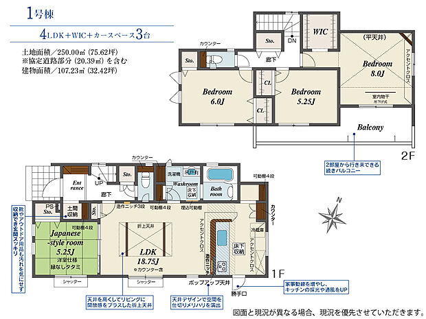 土地面積 234.20m2(約70.84坪)~250.00m2(約75.62坪)