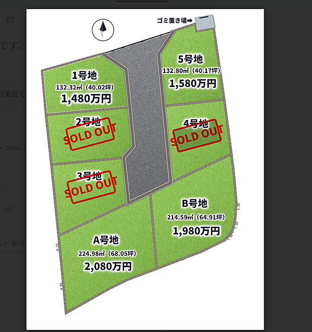 敷地面積60坪以上で南側に障害物がなく陽当たり良い土地です。5区画の分譲地に面してますので全7区画のような分譲地の雰囲気です。