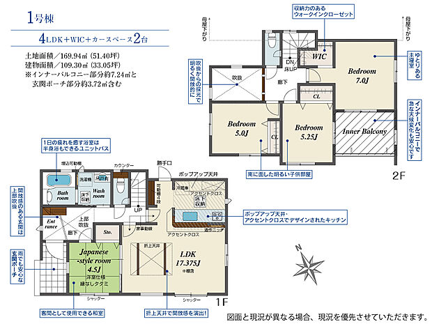 - 「建築条件付き土地」の「建物プラン例」は、土地購入者の設計プランの一例であり、プランの採用可否は任意です。