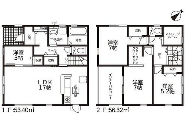 | 間取り | 4LDK+S(納戸)・5LDK | 建物階 | 木造在来軸組工法2階建(910モジュール) |