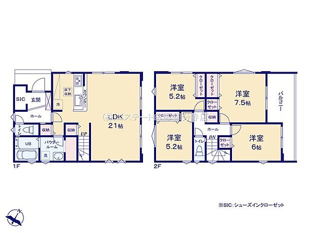 • 「建築条件付き土地」の「建物プラン例」は、土地購入者の設計プランの一例であり、プランの採用可否は任意です。