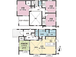 間取り内訳:リビングダイニングキッチン 20帖(1階)・和室 4.5畳(1階)・洋室 5.2帖(2階)・洋室 6帖(2階)・洋室 7.5帖(2階)