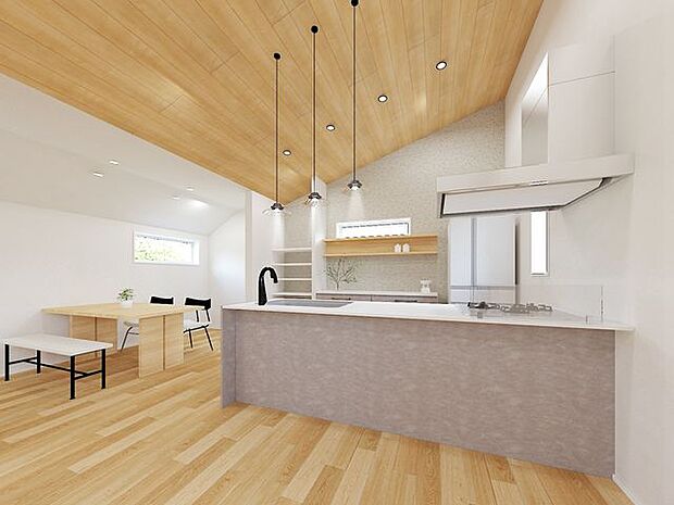 【勾配天井のLDKは広々20帖以上!家事ラク住設備・収納豊富な1棟です!】SIC・ファミリークローゼットなど充実の収納!ZEH水準の省エネ住宅!