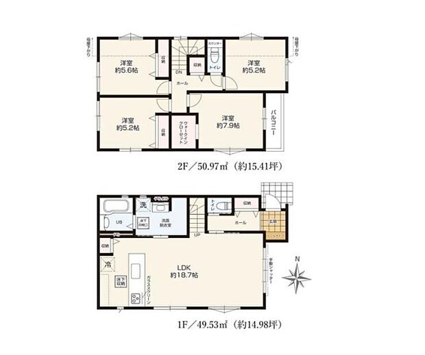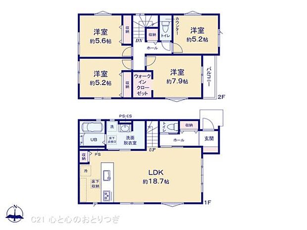 | 間取り | 4LDK 間取り内訳:リビングダイニングキッチン 18.7帖(1階) |
