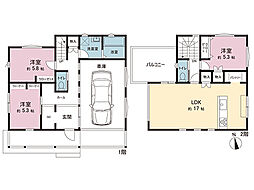 ゆとりの敷地約42坪。車2台並列駐車可能です。SICやWICなど収納豊富な5LDK。