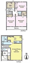| 間取り | 3LDK 間取り内訳:リビングダイニングキッチン 17帖(1階)・洋室 5.2帖(2階)・洋室 5.7帖(2階)・洋室 7帖(2階) |