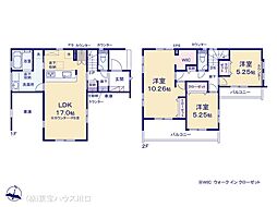 | 間取り | 3LDK 間取り内訳:リビングダイニングキッチン 17帖(1階)・洋室 10.2帖(2階)・洋室 5.2帖(2階)x2 |