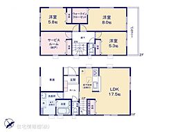 | 間取り | 3SLDK 間取り内訳:リビングダイニングキッチン 18.6帖(1階)・洋室 6帖(2階)x2・洋室 5.2帖(2階)・収納 5.2帖(2階) |