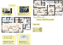 | 間取り | 4LDK 間取り内訳:リビングダイニングキッチン 20帖(1階)・洋室 7帖(2階)・洋室 6帖(2階)x2・洋室 5帖(2階) |