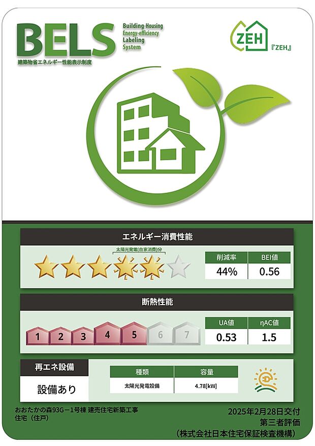 - 星マークの数が多いほどエネルギー消費性能が高いことを示しています。再エネ設備のない住宅は★0~★4の5段階評価、再エネ設備がある住宅は★0~★6の7段階評価となります。