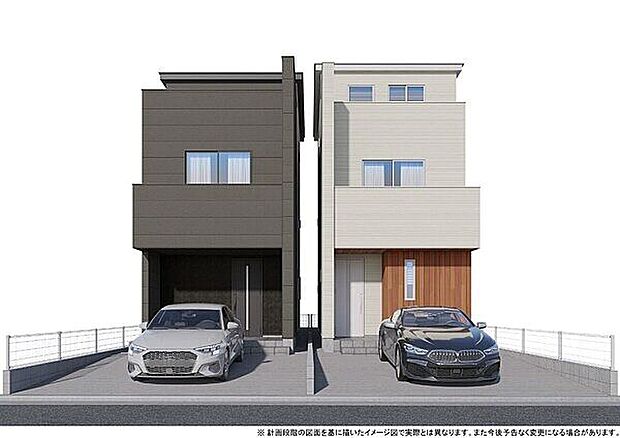 並列2台駐車可能。LDKはゆとりある17畳。南側道路に面する新築分譲住宅。