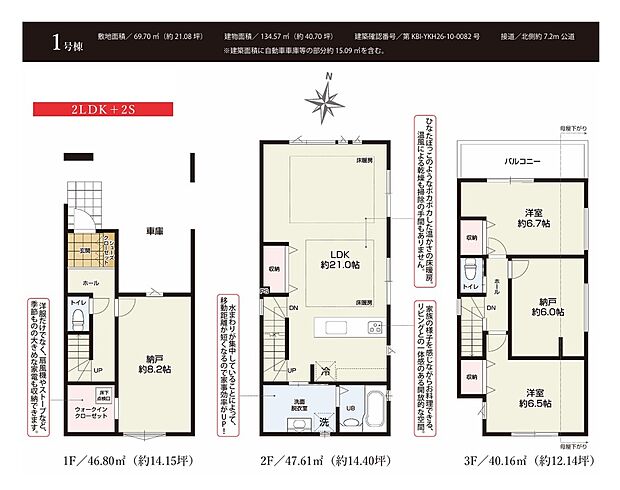 | 建物面積 | 134.57m2(車庫面積15.09m2を含む) | ||
