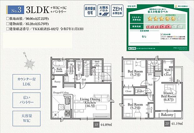| 間取り | 3LDK+2WIC・3LDK+WIC+パントリー+SIC |