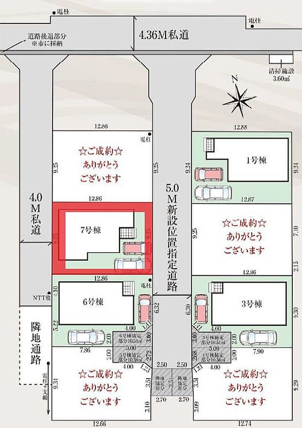 • 西 (私道 幅員 4.00m 接面 9.20m)