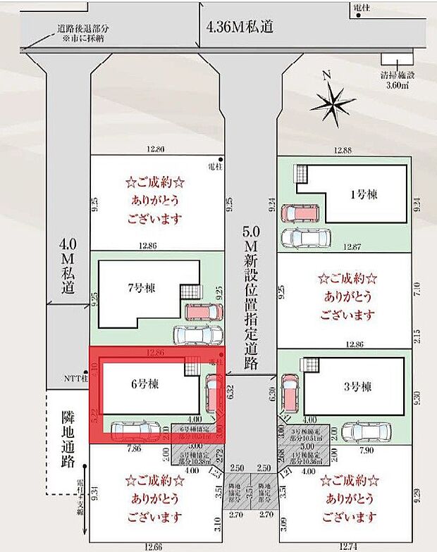 • 西 (私道 幅員 4.00m 接面 9.30m)