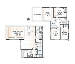 LDKは上部吹抜で開放的。WIC付きの4LDKです。