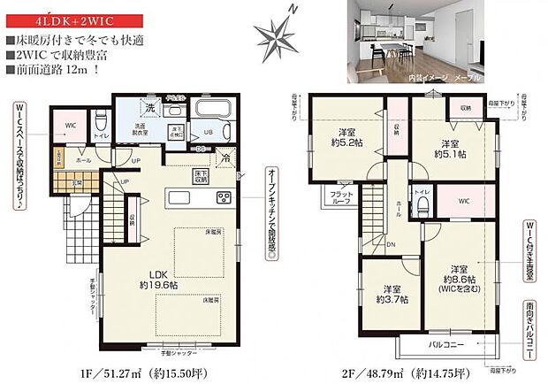 | 間取り | 4LDK 間取り内訳:リビングダイニングキッチン 19.6帖(1階)・洋室 8.6帖(2階)・洋室 5.2帖(2階)・洋室 5.1帖(2階)・洋室 3.7帖(2階) |