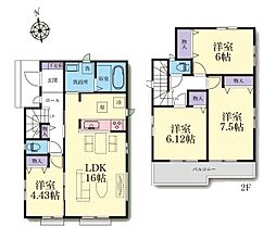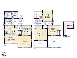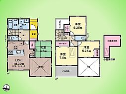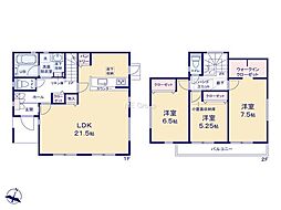 | 間取り | 3LDK 間取り内訳:リビングダイニングキッチン 21.5帖(1階)・洋室 6.5帖(2階)・洋室 5.2帖(2階)・洋室 7.5帖(2階) |