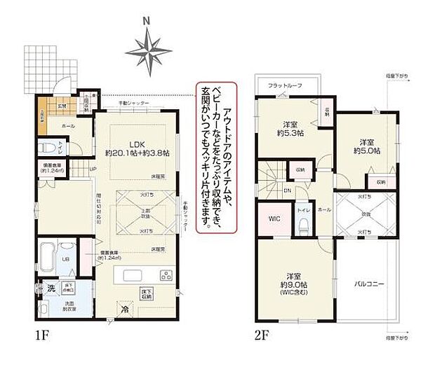 | 間取り | 3LDK 間取り内訳:リビングダイニングキッチン 23.9帖(1階)・洋室 5.3帖(2階)・洋室 9帖(2階)・洋室 5帖(2階) |