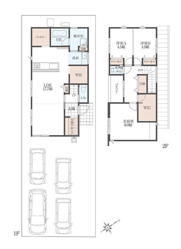間取り 3LDK+4S(玄関クローク/パントリー/WIC×2) 建物階 木造2階建