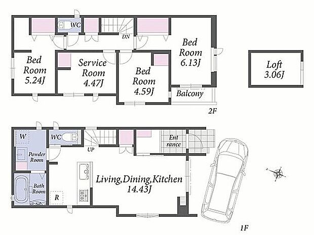 間取り 3LDK+S 建物階 木造、地上2階建て