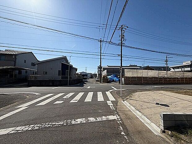前面道路は歩道付きの広々とした9m公道。ZEH水準の新築分譲住宅です。