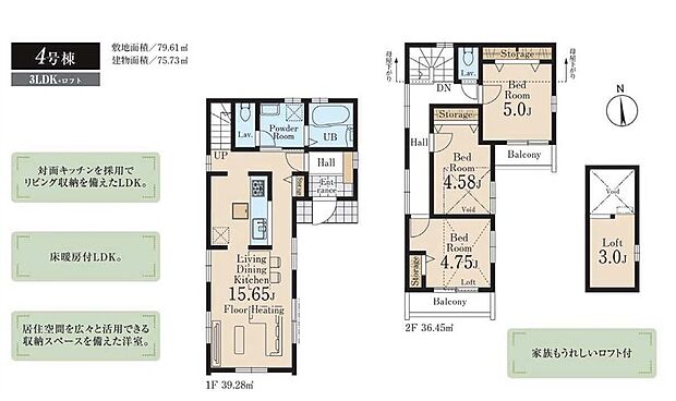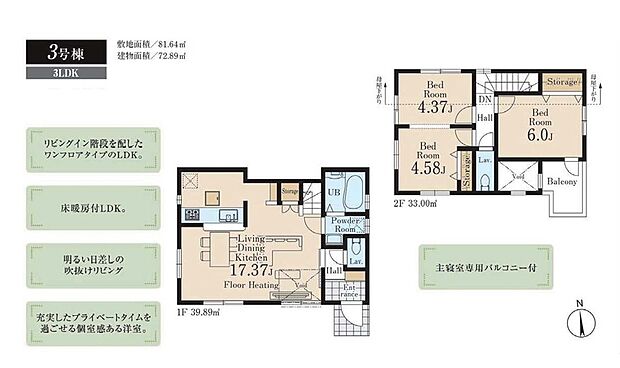 建物面積 72.89m2~80.18m2