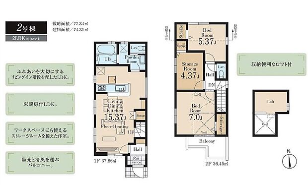 間取り 2LDK+S+ロフト~3LDK+ロフト 建物階 木造2階建