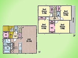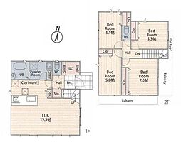 | 建物面積 | 106.61m2・108.88m2(32.24坪・32.93坪) | ||