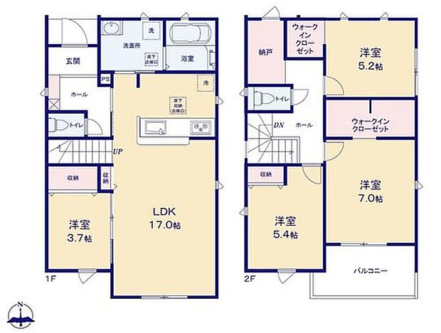 間取り 4LDK・5LDK 建物階 木造在来軸組工法2階建(910モジュール)