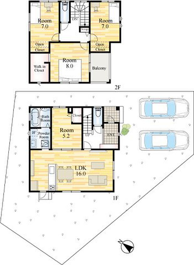 • 「建築条件付き土地」の「建物プラン例」は、土地購入者の設計プランの一例であり、プランの採用可否は任意です。