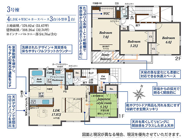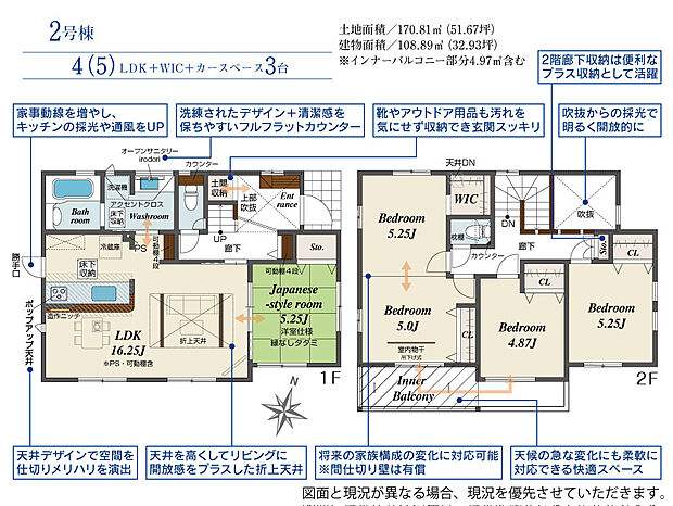 建物面積 108.26m2(約32.74坪)~108.89m2(約32.93坪)