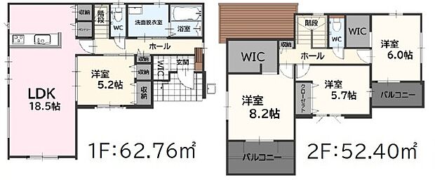 | 建物面積 | 114.78m2(1号棟)~115.16m2(2号棟) | ||