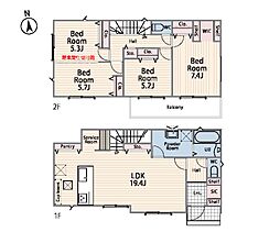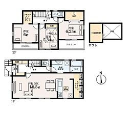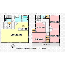 | 間取り | 4LDK 間取り内訳:リビングダイニングキッチン 19.2帖(1階)・洋室 6帖(2階)・洋室 6帖(2階)・洋室 4.5帖(2階)・洋室 4.5帖(2階) |