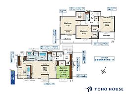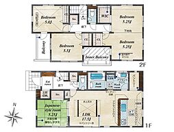 | 間取り | 4LDK 間取り内訳:リビングダイニングキッチン 17帖(1階)・和室 5.2畳(1階)・洋室 5.2帖(2階)・洋室 6.1帖(2階)・洋室 7帖(2階) |