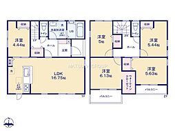 | 間取り | 3LDK 間取り内訳:リビングダイニングキッチン 16.7帖(1階) |